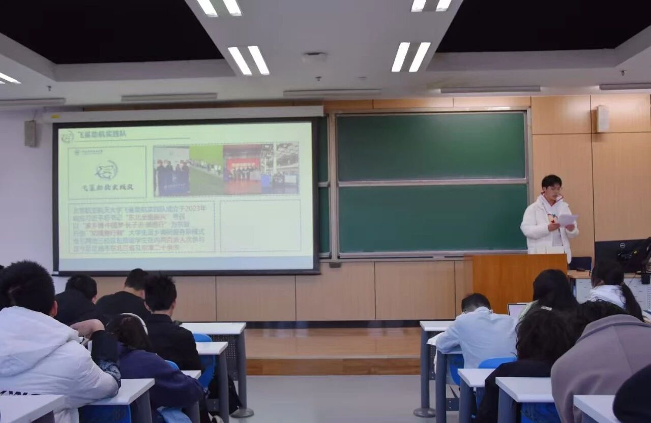飞鲨助航实践队队长周思澎向同学们介绍实践队基本情况并作实践队招新宣传。实践队在往期活动中曾深入东北多座城市展开了深入调研,取得了丰硕的实践成果。曾获北航2024年寒假实践一等奖、2024年暑期实践二等奖、2025年寒假实践三等奖、2025年暑期实践三等奖等多项荣誉。2026寒假,飞鲨助航实践队将以“冰城筑梦,踏雪寻兴”为实践主题,赴辽宁、吉林、黑龙江三省开展实践活动。实践将从宣讲支教、老工业基地转型调研、冰雪经济调研、生态保护调研、红色精神传承等多个角度展开,继续深入拓展“知情意行制”大学生社会实践新模式,延续“家乡情,中国梦,长子志,感恩行”的实践精神。