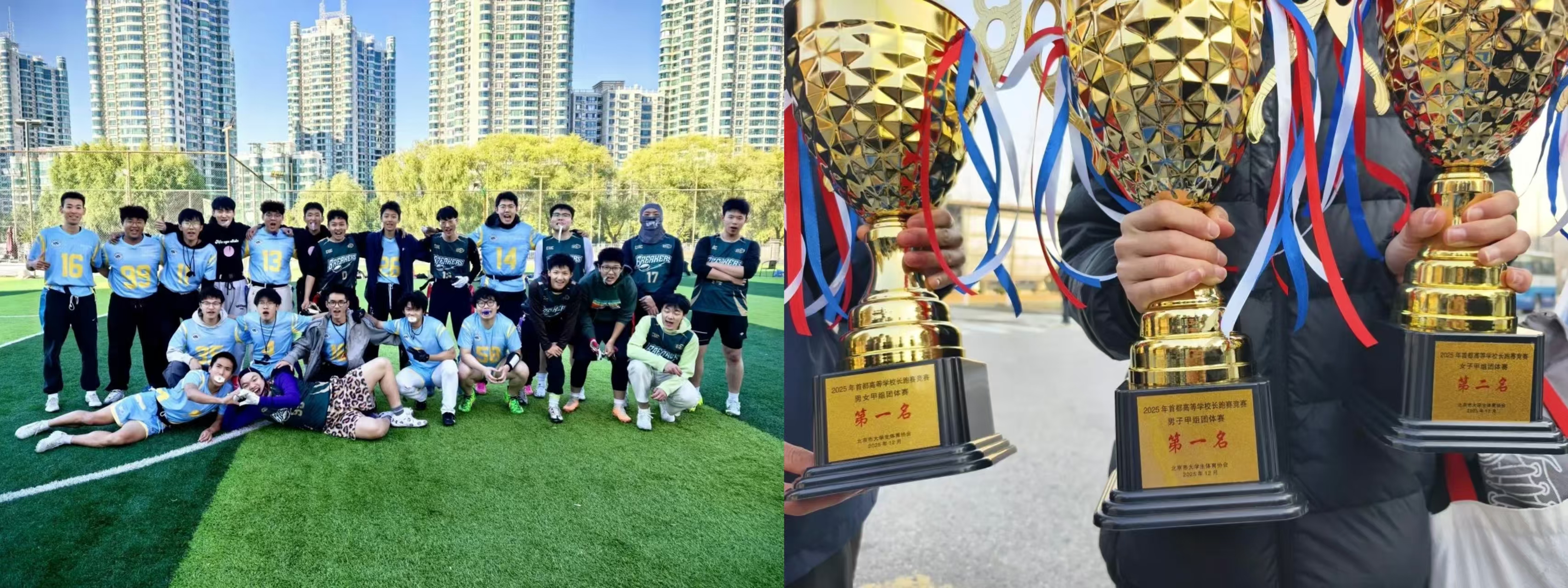 从此,他们成为并肩前行的战友。在训练中相互鞭策,在各自专项上持续精进,更在橄榄球赛中默契配合,共同推广校园体育,服务更多同学。