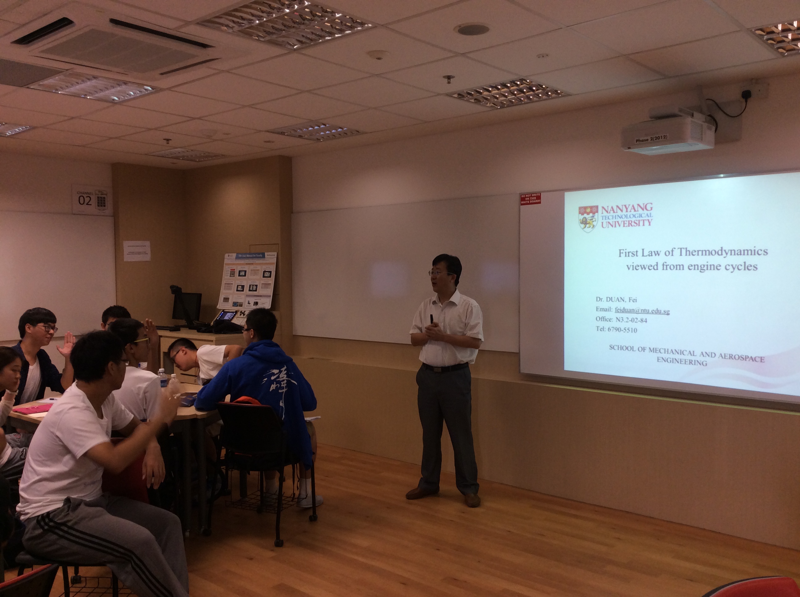在新加坡南洋理工大学交流访学期间,在南洋理工大学机械与宇航学院副院长Ooi Kim Tiow 教授的安排与大力协助下,同学们先后参加并完成了南洋理工大学机械与宇航工程学院开设,由机械与宇航学院资深教师Wong Teck Neng教授主讲的微观流体力学课与传热学概论课、由机械与宇航学院资深教师Sridhar Idapalapati 副教授主讲的复合材料优化设计课,以及由机械与宇航学院资深教师Duan Fei教授主讲的工程热力学课。经过一周的课程学习,同学们初步接受了航空行业相关的专业基础课程,切身体验了以南洋理工大学为代表的当今世界一流大学的课堂教学风格。这些都拓宽了同学们的视野,增长了同学们的认知能力。