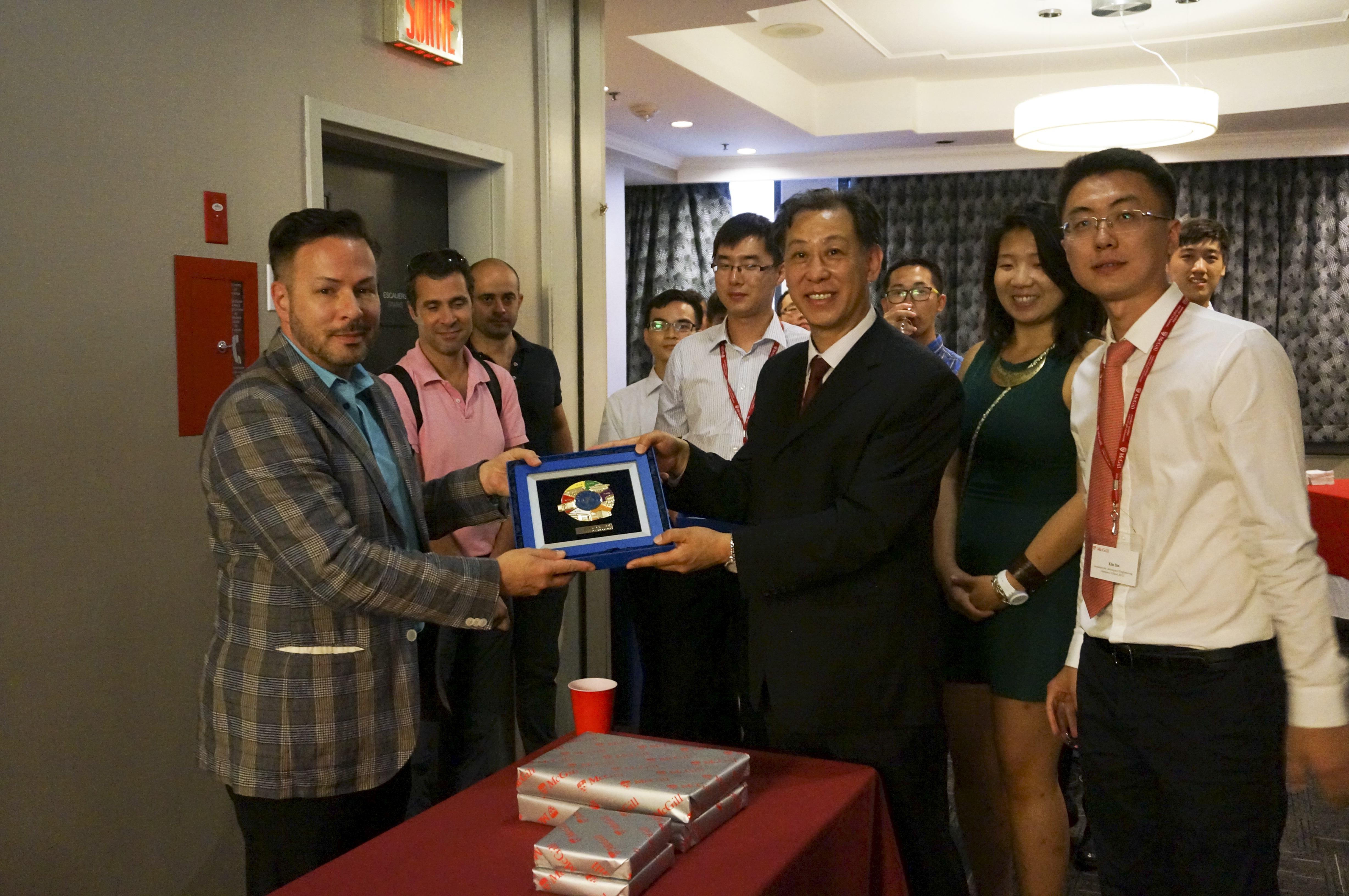 文化交流活动也是本次行程不可或缺的一部分。麦吉尔大学为同学们举办了欢迎晚宴和欢送晚宴。在晚宴上,交流访问团的老师同学们与麦吉尔大学的负责人、各位授课老师、助教以及其他访问学生举杯庆祝,展开了更为亲切和深入的交流。在晚宴过程中,交流访问团的领导老师和麦吉尔大学的相关负责人互赠礼物,共话未来,一起探讨了两校之间的交流合作事宜。