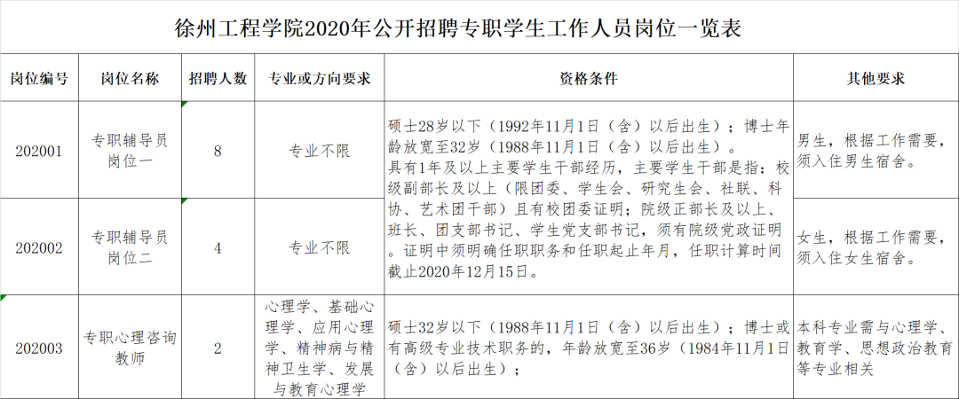徐州工程学院因事业发展需要,经研究决定,面向社会公开招聘专职学生工作人员14名,其中专职辅导员12名,心理咨询教师2名,现将有关事项公告如下: