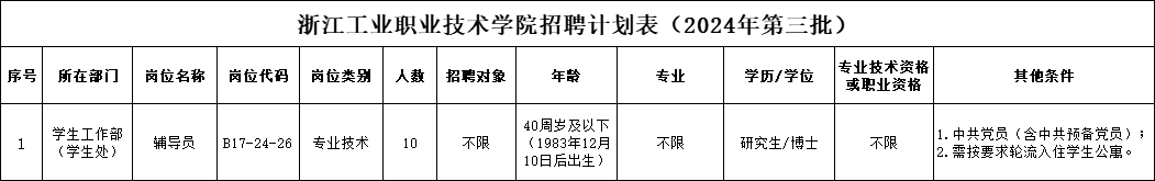 本批次招聘辅导员岗位需求为1个岗位共10人,为专业技术岗位。