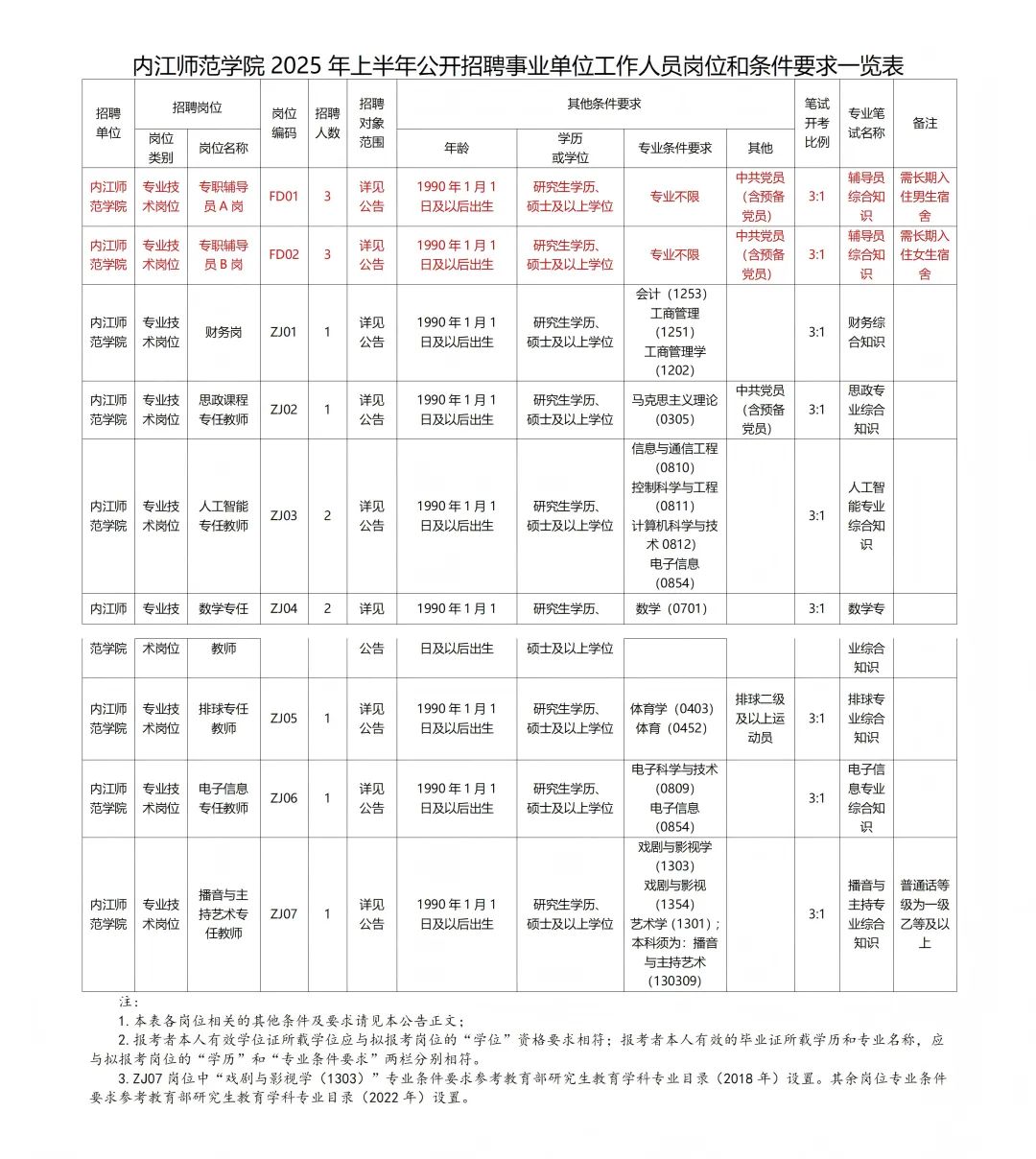 3.笔试时间及地点。定于2025年4月26日在内江师范学院(具体时间和具体地点详见《准考证》)举行。缺考笔试科目或笔试成绩为0分的报考者,视作自动放弃,取消报考资格。