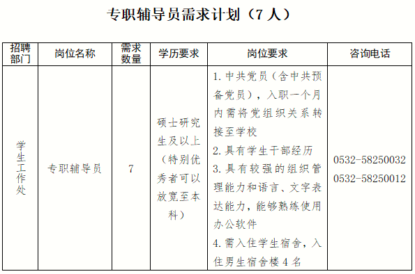 根据工作需要,按照公开招聘、全面考核、择优录用的原则,山东文化产业职业学院面向全社会招聘专职辅导员。现将有关事宜公告如下: