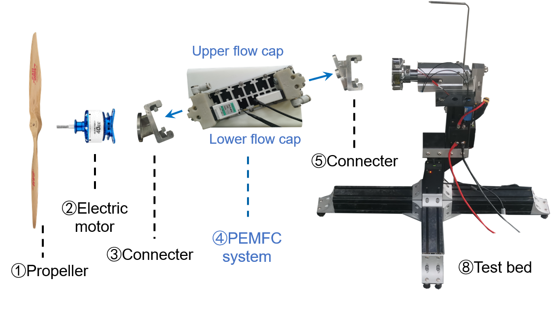 报告介绍了实验室研制的一种由氢燃料电池驱动的航空推进系统,该推进系统可以直接利用螺旋桨后的气流为质子交换膜燃料电池阴极提供反应与冷却所需的空气流量,舍弃了目前商用质子交换膜燃料电池所需的进气和冷却轴流风扇,从而避免了轴流风扇引起的寄生功率和附加重量,相比于传统氢燃料电池驱动的航空推进系统,本次报告提出的新构型推进系统功重比和推重比分别提高了25.9%和21.8%。