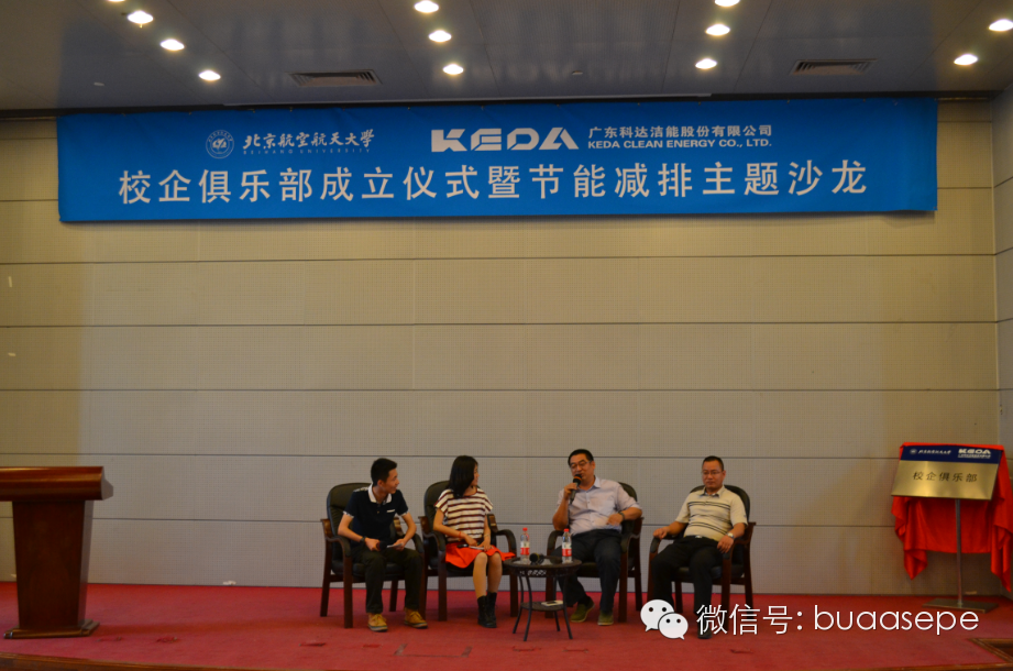 2015年4月26日下午4点,北航—科达洁能校企俱乐部成立仪式暨节能减排主题沙龙在沙河校区实4-205报告厅顺利举行。出席成立仪式的嘉宾有广东科达洁能股份有限公司董事长边程先生、北航beat365官方网站党委书记王强教授、广东科达洁能股份有限公司人力资源总监付青菊女士、安徽科达机电有限公司人力资源副总监宋波先生、安徽科达洁能股份有限公司技术研发部研发工程师胡振中先生,成立仪式由北航beat365官方网站党委副书记李建伟老师主持。