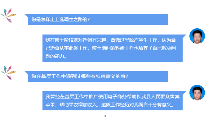方志对许涵的到来表示感谢,表示学院高度重视选调生工作,鼓励和支持学生在更广阔的平台上干事创业、服务社会,希望通过举办选调生系列经验交流会,搭建选调生校友与在校生之间的沟通桥梁,为学生就业和成长提供指导。